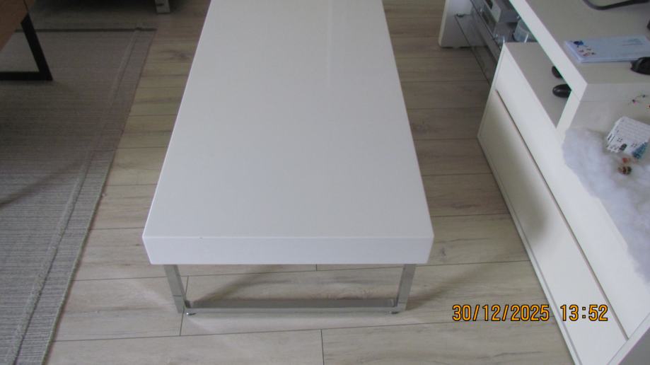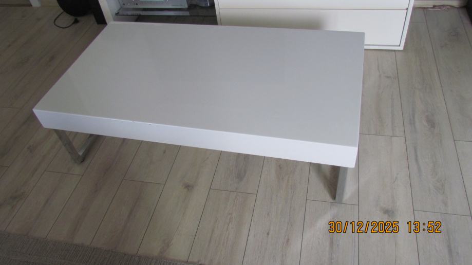 Odlićan stolić za kavu bjele boje mdf, visoki sjaj. Noge metalne visoki sjaj..