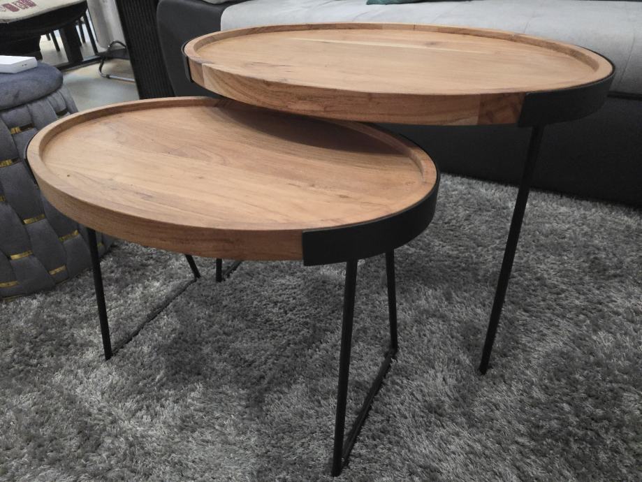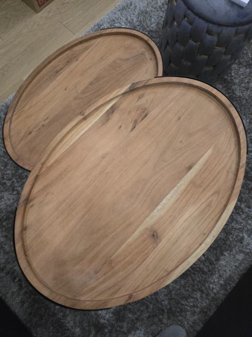 Ima metalne nogice, a gore puno bagremovo drvo.