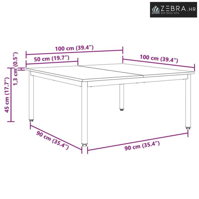 Sveukupne dimenzije: 100 x 100 x 45 cm (D x Š x V)