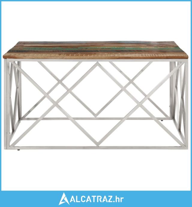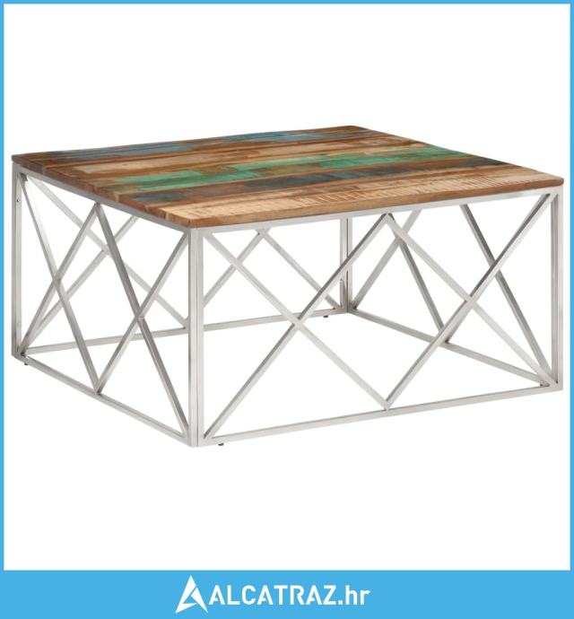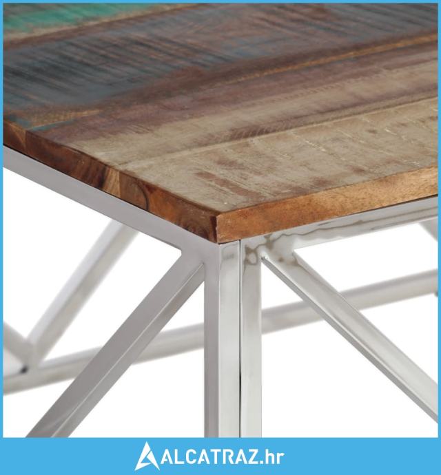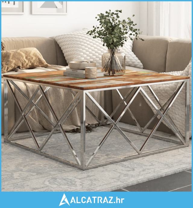 Stolić za kavu srebrni od nehrđajućeg čelika i obnovljenog drva - NOVO