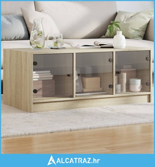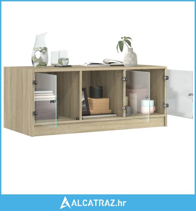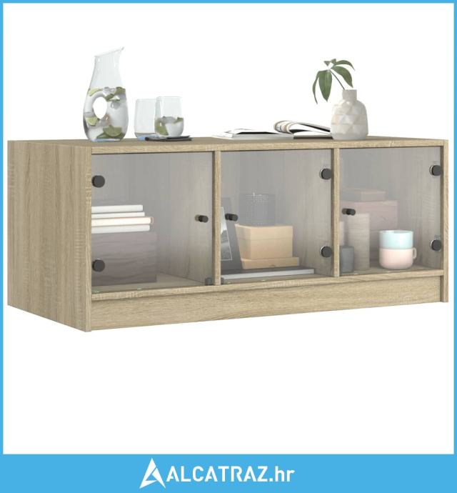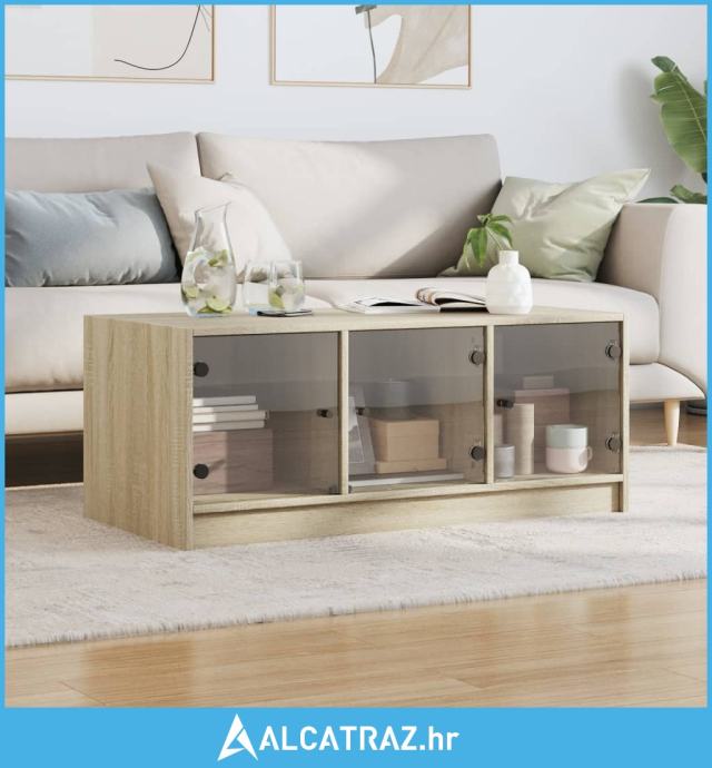 Stolić za kavu sa staklenim vratima boja hrasta 102x50x42 cm - NOVO
