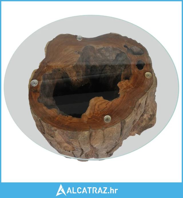 Stolna ploča napravljena je od kaljenog stakla i ima prostora za vaša pića, vaze, zdjele s voćem ili ukrase. Može se upotrebljavati i kao pomoćni stolić. Stabilna i izdržljiva baza stola u stilu trupaca napravljena je od visokokvalitetne tikovine. Sastavljanje je jednostavno.