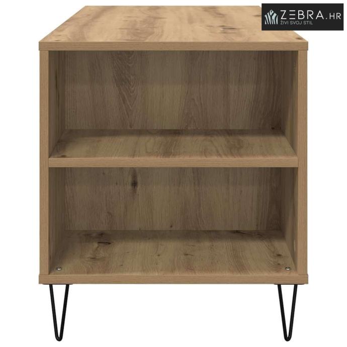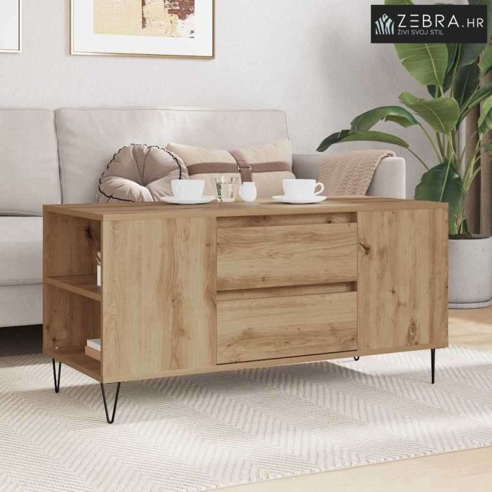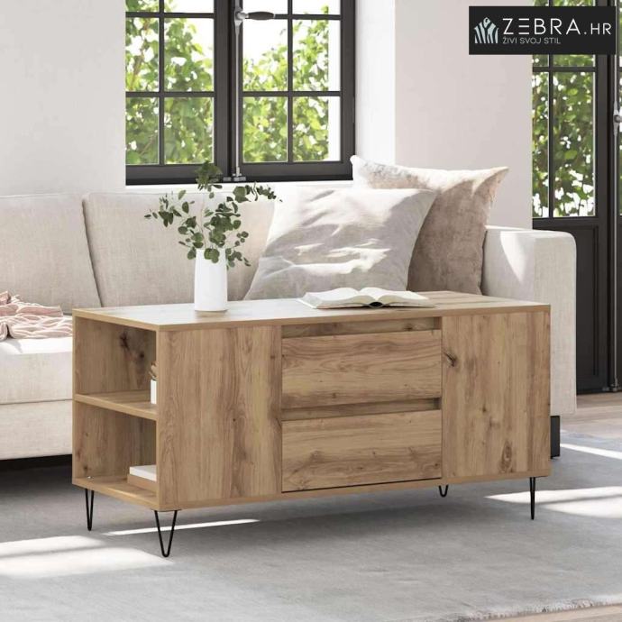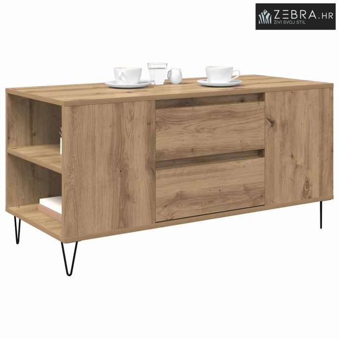 Materijal od konstruiranog drveta: Stolić za kavu je napravljen od konstruiranog drveta, poznatog po svojoj izdržljivosti i glatkoj završnoj obradi. Ovaj materijal je otporan na izobličenje i habanje, tako da će stolić ostati u vrhunskom stanju godinama. Njegov moderan izgled odgovara suvremenom dizajnu. Integrirane opcije pohrane: Stolić je osmišljen s funkcionalnošću na umu. Ima klasične ladice sa ručkom ili mehanizmom za povlačenje, što omogućava lako spremanje daljinskih upravljača i sličnih stvari, čime održava dnevni boravak urednim. Čvrste metalne noge: Stolić je podržan čvrstim metalnim nogama koje daju stabilnost. Ove noge su izdržljive i zadržavaju strukturalnu cjelovitost tijekom upotrebe, dodajući industrijski šik stoliću. Višenamjenski dizajn: Kako je središnji komad u sobi, stolić omogućava prostor za druženja, uživanje uz kavu ili za prikaz dekorativnih predmeta. Njegova svestranost čini ga savršenim za formalne i neformalne prostore. Praktično sastavljanje: Stolić dolazi u ravnom pakiranju za lakše sastavljanje, a za to su potrebne dvije osobe s odvijačem. Iako je potrebno malo truda, ovaj stolić donosi odličan dodatak vašem domu, nudeći funkcionalnost uz stil. Boja: Umjetnički hrast