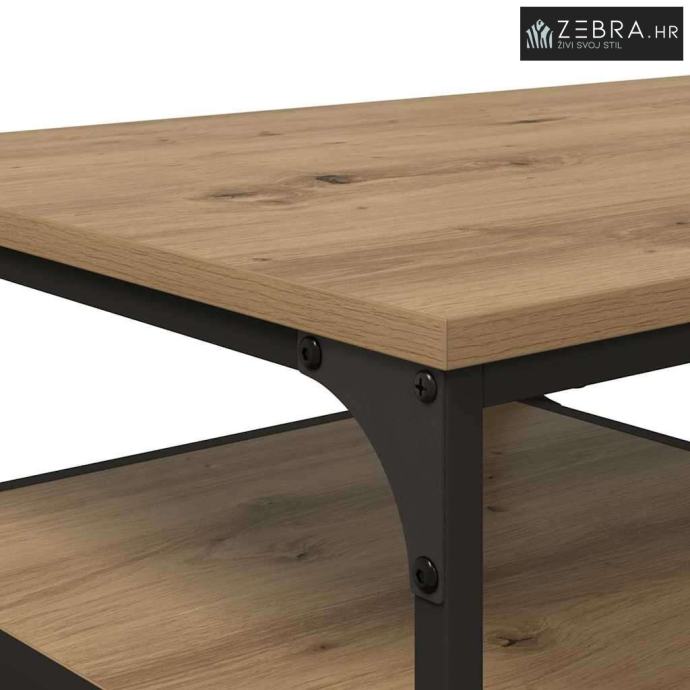 Konstruirano drvo: Radna površina i police su od konstruiranog drva, s glatkom, izdržljivom teksturom koja izgleda super i traje dugo. Ovaj materijal osigurava dugovječnost i uklapa se u razne stilove unutarnjeg dizajna. Dovoljna kapacitet za pohranu: S policama od daske, stolić nudi dovoljno prostora za skladištenje knjiga, časopisa i dodataka. Višestruke police pomažu da sve bude organizirano i da dnevni boravak izgleda uredno. Crni metalni okvir: Čvrsti crni metalni okvir osigurava stabilnost, podupirući težinu na radnoj površini. Industrijski izgled metalnog okvira savršeno se uklapa u rustikalni stil stolića, spajajući funkcionalnost i estetiku. Pravokutni dizajn: Elegantni pravokutni oblik odlično se uklapa u različite rasporede prostora, čineći ga svestranim za razne dnevne boravke. Bilo da je pored kauča ili kao središnji komad, ovaj stolić zrači bezvremenskom privlačnošću. Njega i održavanje: Lako se održava, samo treba brisati vlažnom krpom kako bi zadržao svoj izgled. Izbjegavaj jake kemikalije ili prekomjernu vlagu jer to može oštetiti drvenu površinu. Boja: Umjetnički hrast