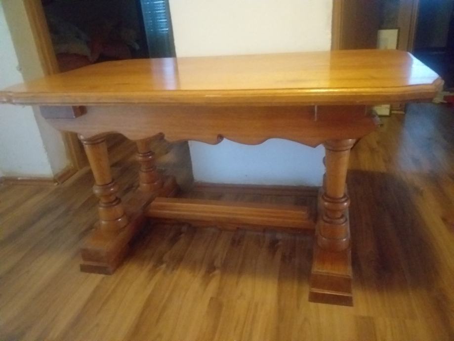 Prodajem antikni stolić za dnevni boravak. Stol je rucno rađen od čiste hrastovine unikat. Dimenzije v 60 cm d 90 š 60.Stolić je u odličnom stanju, malo korišten.