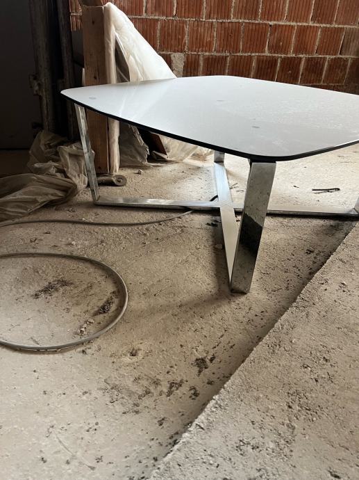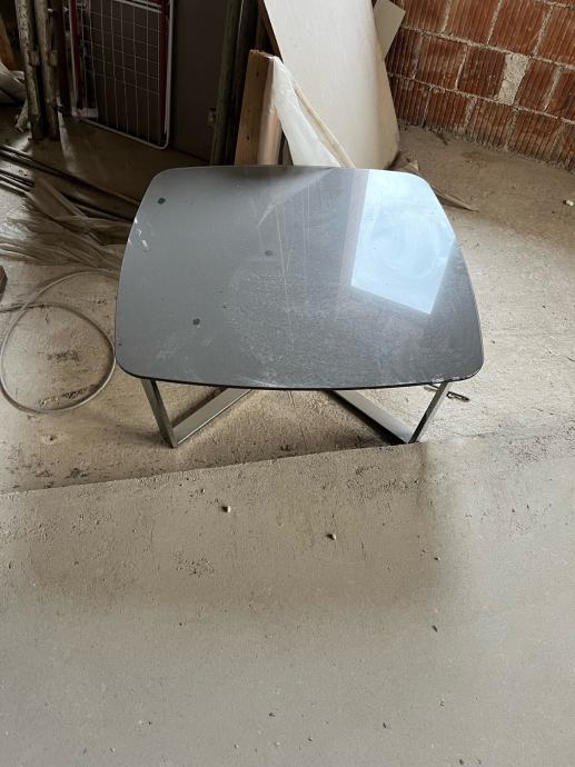 Stakleni crni stolić sa metalnim nogama, rabljeno. 90x90x38.5, kaljeno staklo