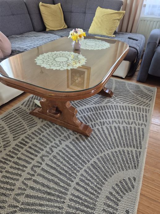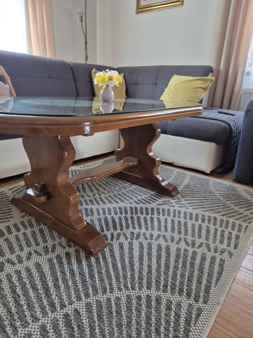 Drveni hrastov stolić- gore staklo
