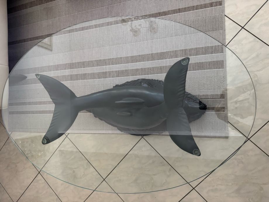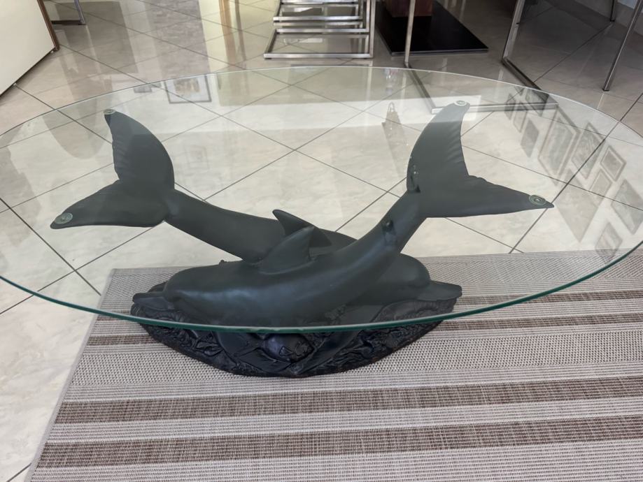 Lijepi stolić sa dva delfina i staklenom pločom , visok 44 cm