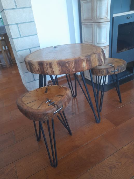 1× stolića -hrast, 55cm promjera,visina 58 cm
