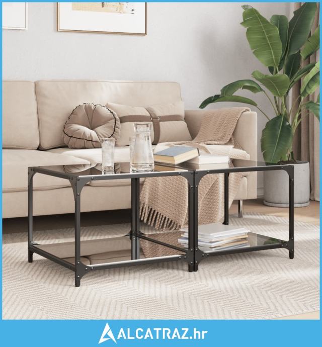 Stolići za kavu s crnim staklenim vrhom 2 kom 50x50x40 cm čelik - NOVO