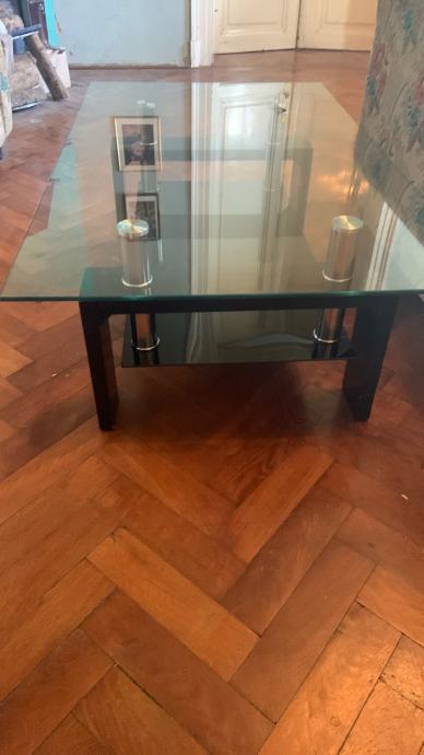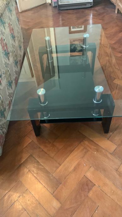 Prodajem stakleni stolič dim 120 cm x 70 cm x 43 cm kao na slici moderan, kombinacija metal, drvo, staklo