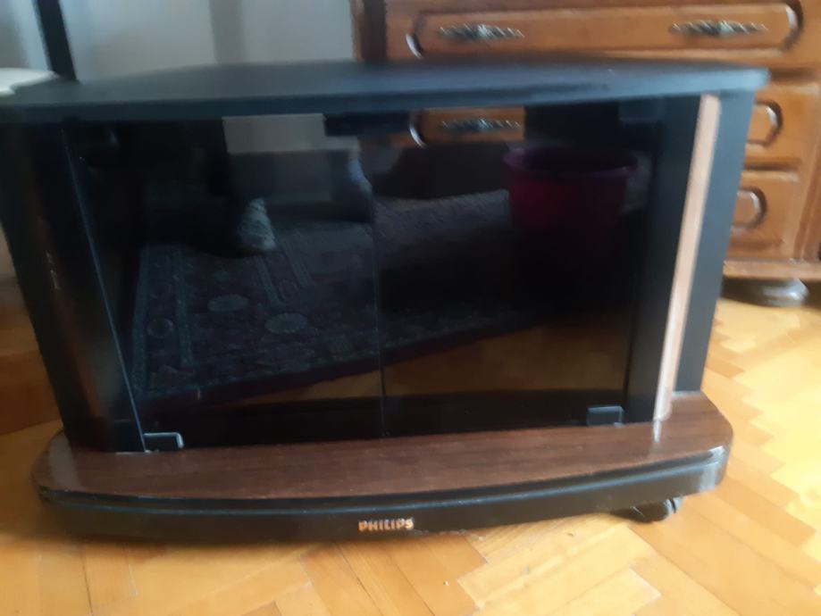 Prodajem stalak za televizor Philips u crnoj i smeđoj boji u savršenom stanju. Ima i dvije police zatvorene zatamnjenim staklom, praktične za CD player, video ...