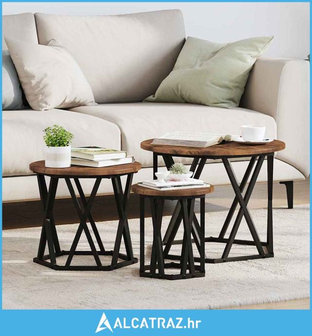 - Uključeni dijelovi: Ovaj set ima tri stolića, pa ti daje puno opcija za raspored. Svaki od njih ima čvrst crni čelični okvir za pouzdanu potporu, bez obzira koristiš li ih odvojeno ili zajedno.