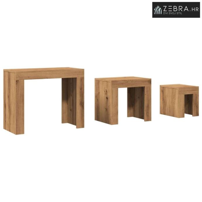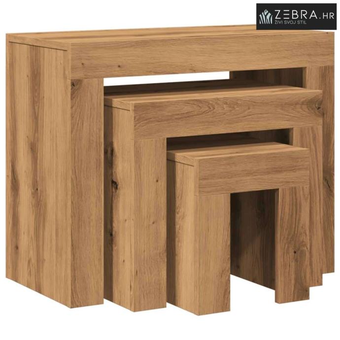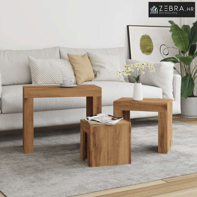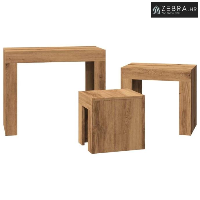 Uklapajući stolići za kavu 3 kom boja hrasta konstruirano drvo - hrast