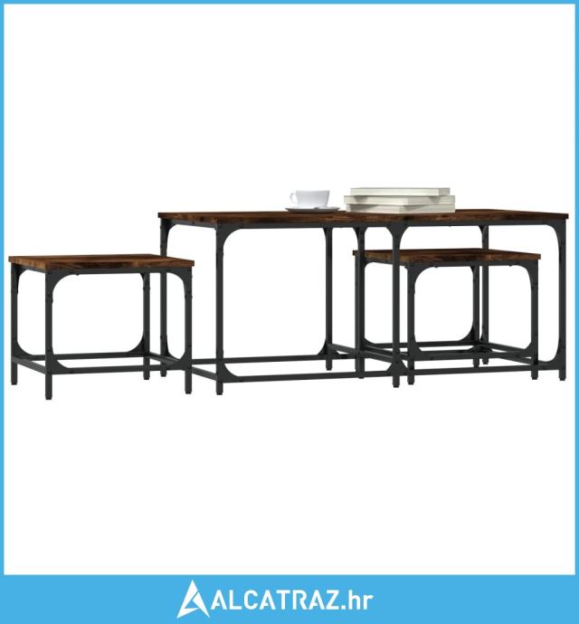 Uklapajući stolići za kavu 3 kom boja hrasta konstruirano drvo - NOVO