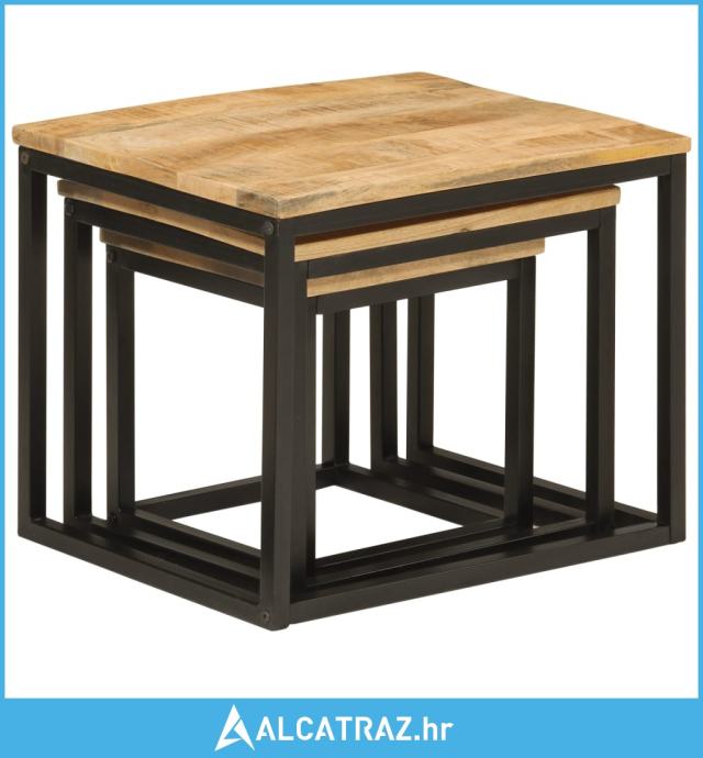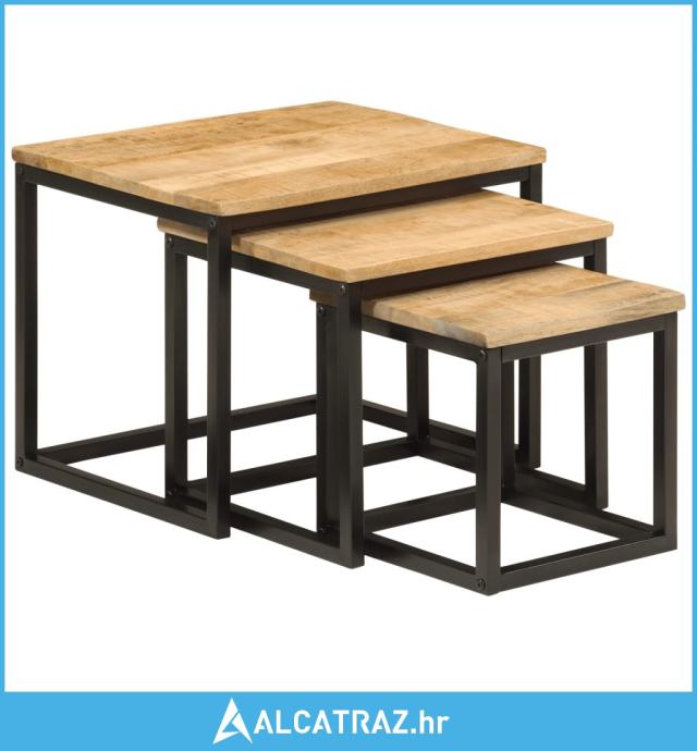 Uklapajući stolići za kavu 3 kom masivno drvo manga i željezo - NOVO
