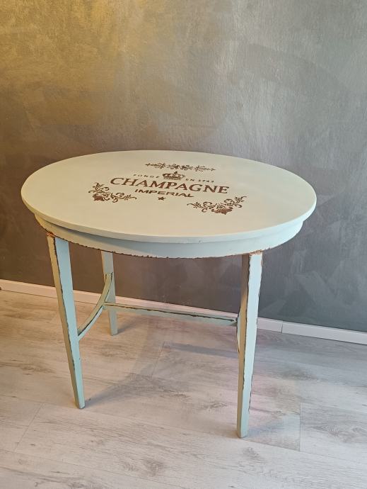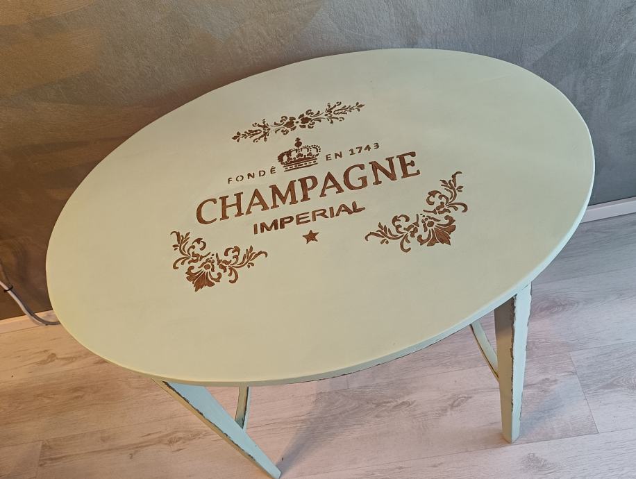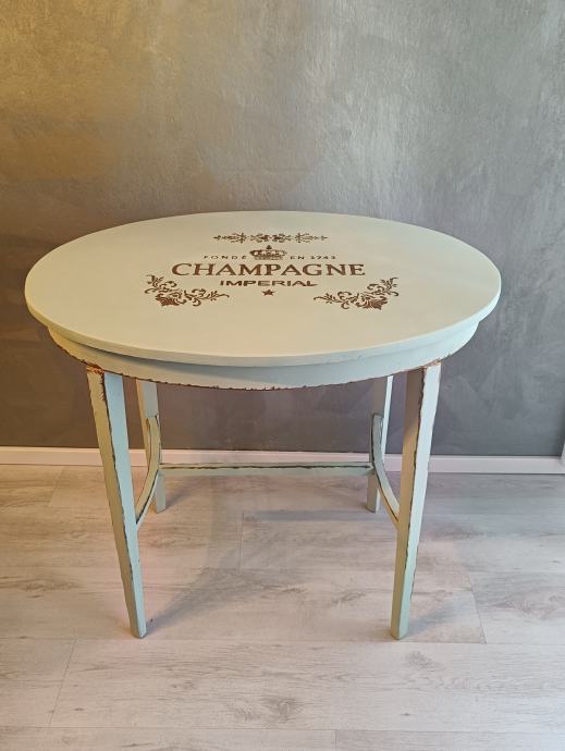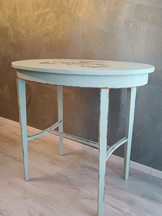 Unikatni stolić od punog drva, pažljivo restauriran u shabby chic stilu. Ukrašen brončanim detaljima i ručno oslikanim motivima. Spoj elegancije, topline i ručnog rada — savršen dodatak svakom prostoru s dušom.