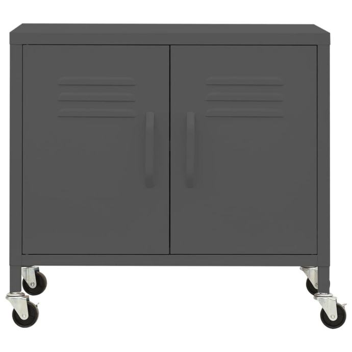 Ovaj ormarić za pohranu napravljen je od čelika, zbog čega je čvrst i stabilan. Podesiva polica pruža dovoljno prostora za držanje vaših DVD-ova, multimedijskih uređaja, knjiga i malih potrepština organiziranima i na dohvat ruke. Ormarić je opremljen četirima kotačima za lakše kretanje. Dva prednja kotača imaju kočnice kako bi se izbjeglo slučajno pomicanje. Također se lako čisti vlažnom krpom.