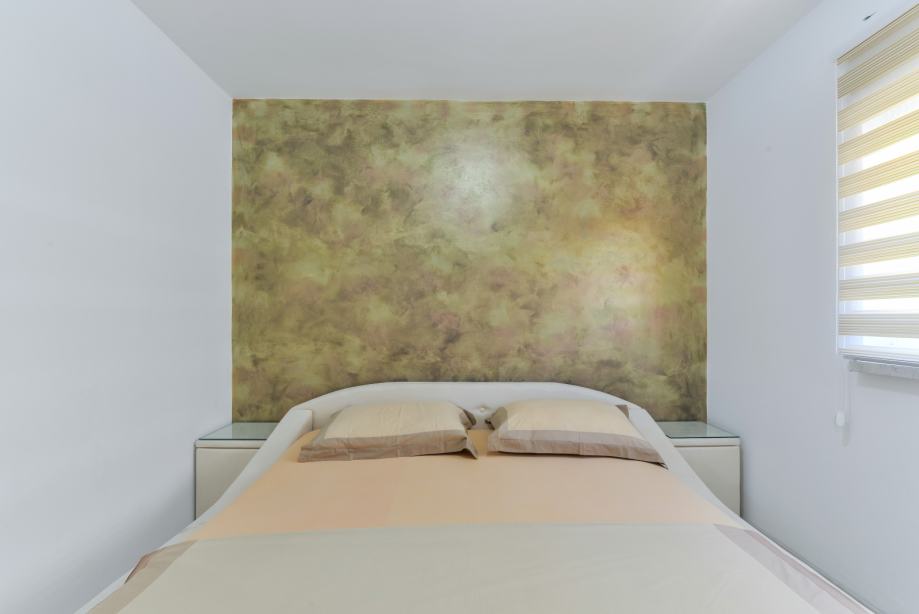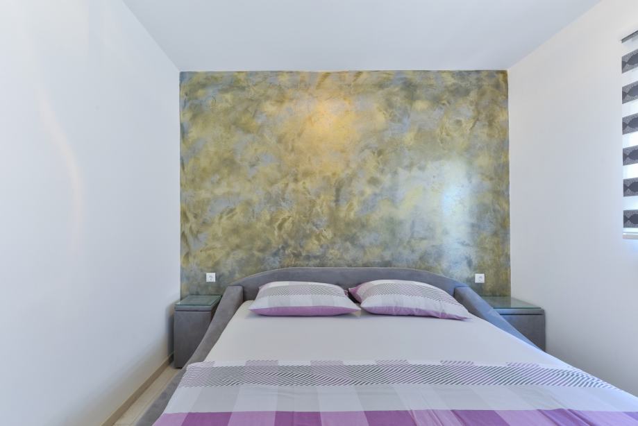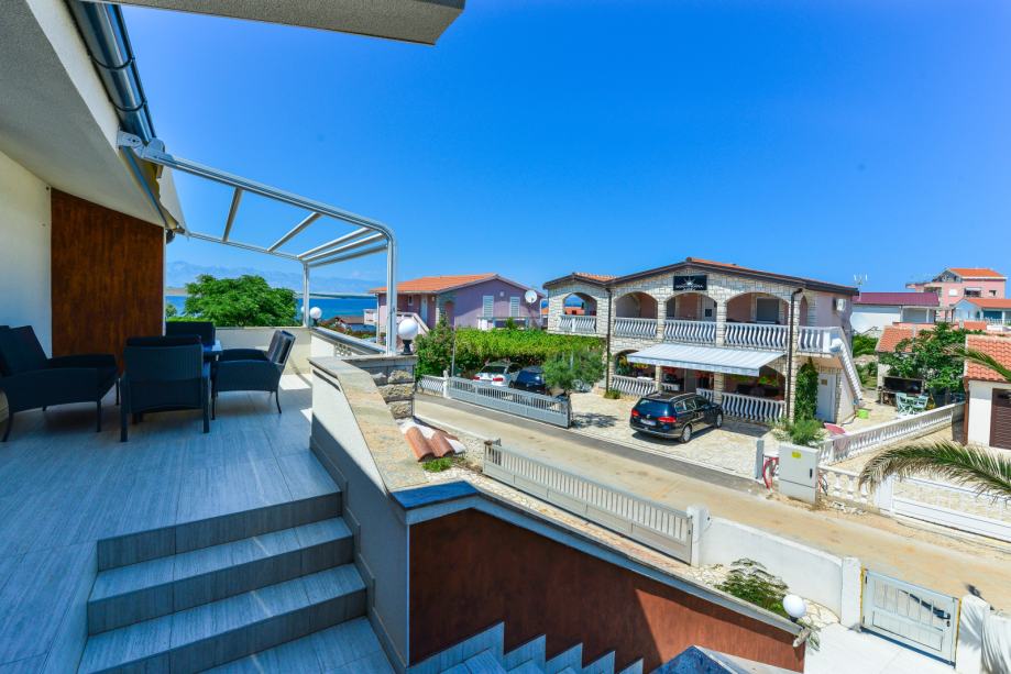 Apartman za 4-6 osoba nalazi se u predjelu Lučica na otoku Viru. Luksuzan i moderno namješten apartman površine 52 m² na prvom katu kuće sastoji se od dnevnog boravka, blagovaonice i potpuno opremljene kuhinje, dvije spavaće sobe s bračnim krevetima i kupaonice s tušem. U dnevnom boravku nalazi se kauč na razvlačenje za dvije osobe. Dnevni boravak ima izlaz na namješten balkon površine 13 m² idealan za zajednički doručak ili večeru. Klima uređaj, satelitska televizija, bežični internet i parkiralište na posjedu su dostupni bez nadoplate. Najbliža plaža za kupanje, sunčanje i ronjenje udaljena je samo 30 m od kuće!
