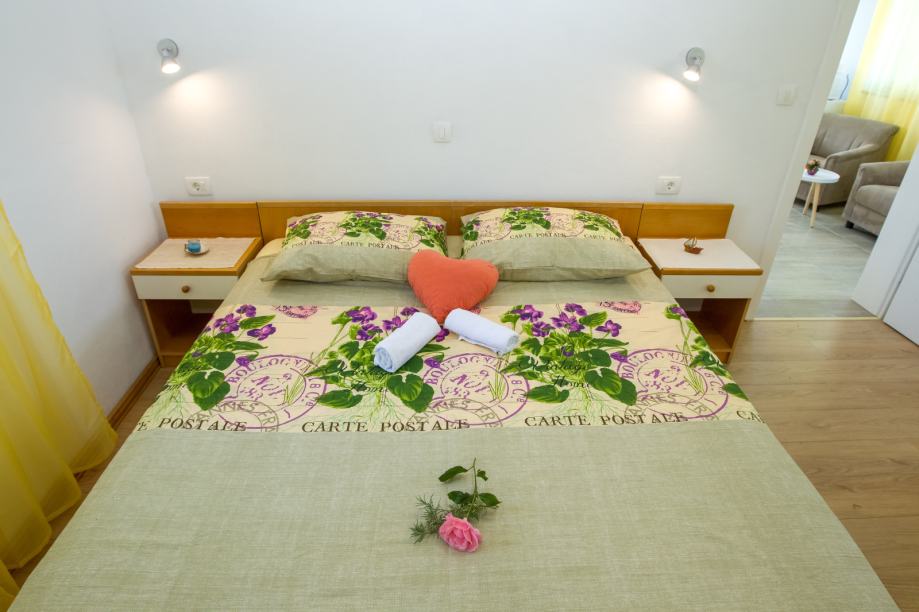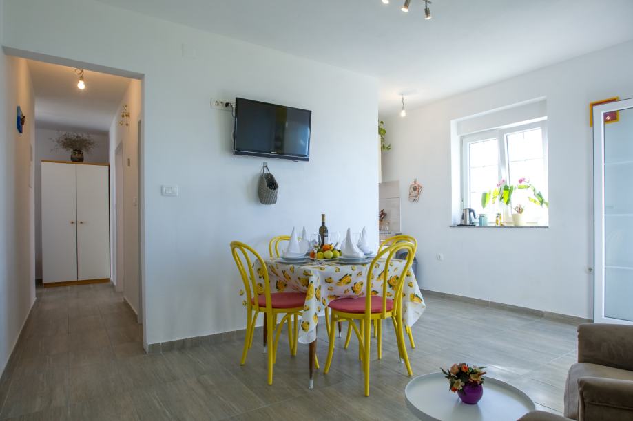 Provedite svoj odmor iz snova u prekrasnom apartmanu u Rtini. Mjesto je prekrasno i mirno jer nema zvukova automobila. Apartman ima svu potrebnu opremu. Ima dvije sobe s bračnim krevetom, kuhinju, dnevni boravak i kupaonicu. Također, tu je i prekrasan balkon s pogledom na more. Doživite potpuno domaće iskustvo u prekrasnom mjestu Rtina s nekim od najljepših plaža u okolici. Samo kratka vožnja odvest će vas do nekih od najljepših mjesta u ovom dijelu Dalmacije.
