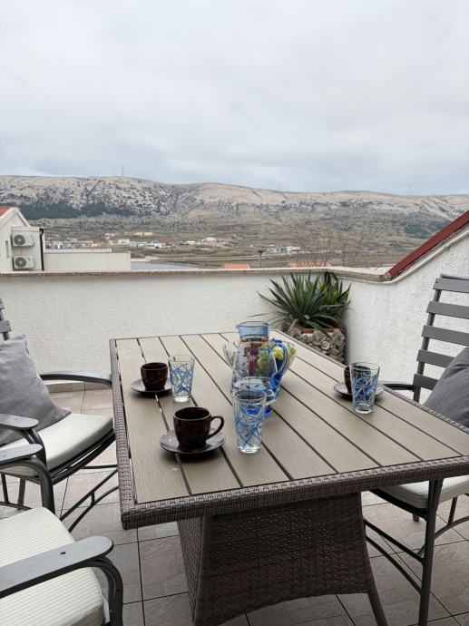 Apartman se nalazi na mirnoj lokaciji s pogledom na pašku uvalu i grad Pag. Glavna gradska plaža udaljena je svega 5 minuta vožnje autom. U blizini se nalazi šetnica koja vodi prema kulturnoj znamenitosti Stari Grad Pag, idealna za šetnje i razgledavanje.