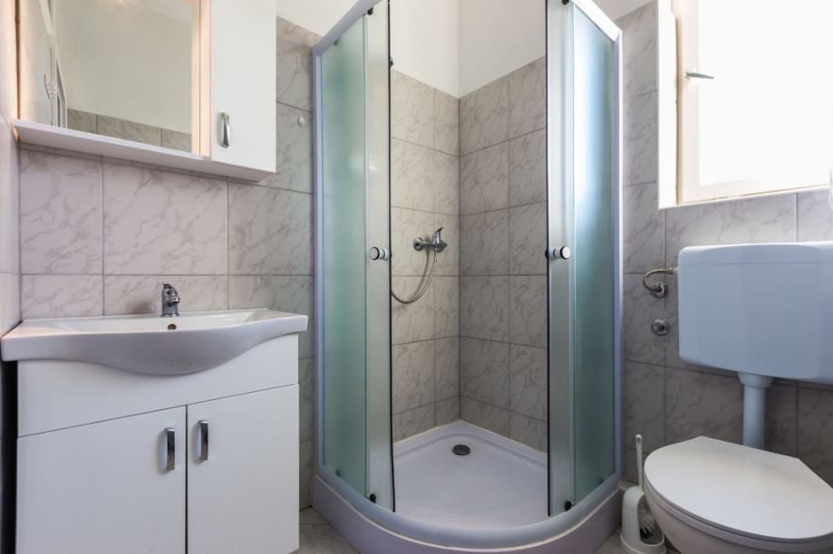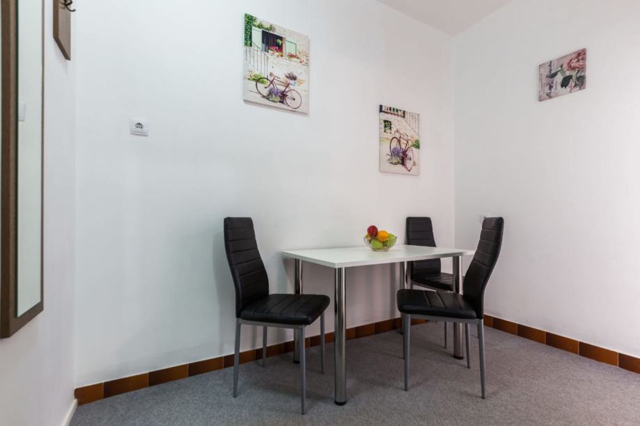 Iznajmljujem više apartmana,jednosobne za 2 ili 3 osobe,dvosobne za 4 ili 5 osoba te trosoban za 7 do 9 osoba po potrebi sa dodatnim turističkim rasklopivim ležajem,koji su udaljeni cca 100 metara od kombinirano šljunčano betonske plaže .