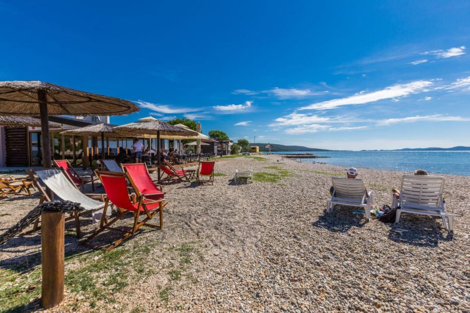 Besplatni parking za vozila je u velikom ograđenom dvorištu .Apartman je udaljen cca 100 metara od kombinirano betonske i šljunčane plaže pa ne morate paliti auto,voziti se u gužvi do plaže,tražiti i plaćati parking, gdje se nalazi kafić sa dječjim igralištem i ljuljačkama , igralište za nogomet i košarku,igralište za odbojku na pijesku ,fast food , a također je i mogućnost najma vodenog skutera u blizini plaže gdje je i aquapark.Restoran ( konoba ) udaljen je 150 m. Do centra ima 15 minuta hoda ( pošte , tržnica , restorani ,ljekarna...) . Najbliža trgovina miješovite robe udaljena je 150 m . Trgovački centri Špar,Plodine,Tommy....nalaze se cca 3 kilometra od apartmana.Od Zadra smo udaljeni 10 km a 17 km do Biograda na Moru i hrvatskog Gardalanda . Udaljenost od zračne luke Zadar je 6 km , a udaljenost od Marina Dalmacija je 3 km i 5 km od autoputa.