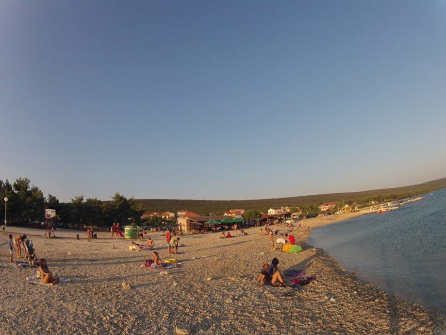 Plaža je betonska i šljunčana cca 100 m udaljena od apartmana ,150 m od apartmana se nalazi mala pjeskovita plaža , a 500 m od apartmana udaljena je kamenita plaža u borovoj šumi duga 4 km.