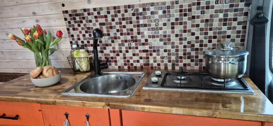 •Potpuno opremljena kuhinja sa štednjakom,sudoperom i radnom pločom.