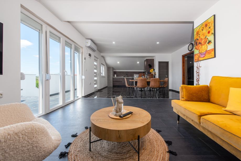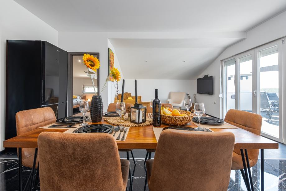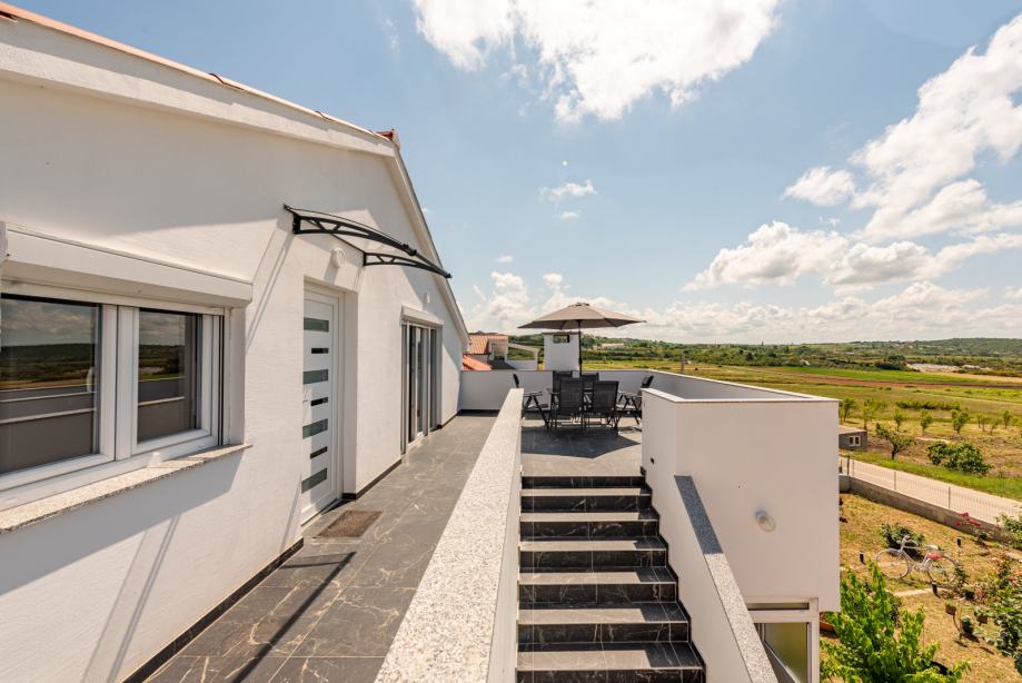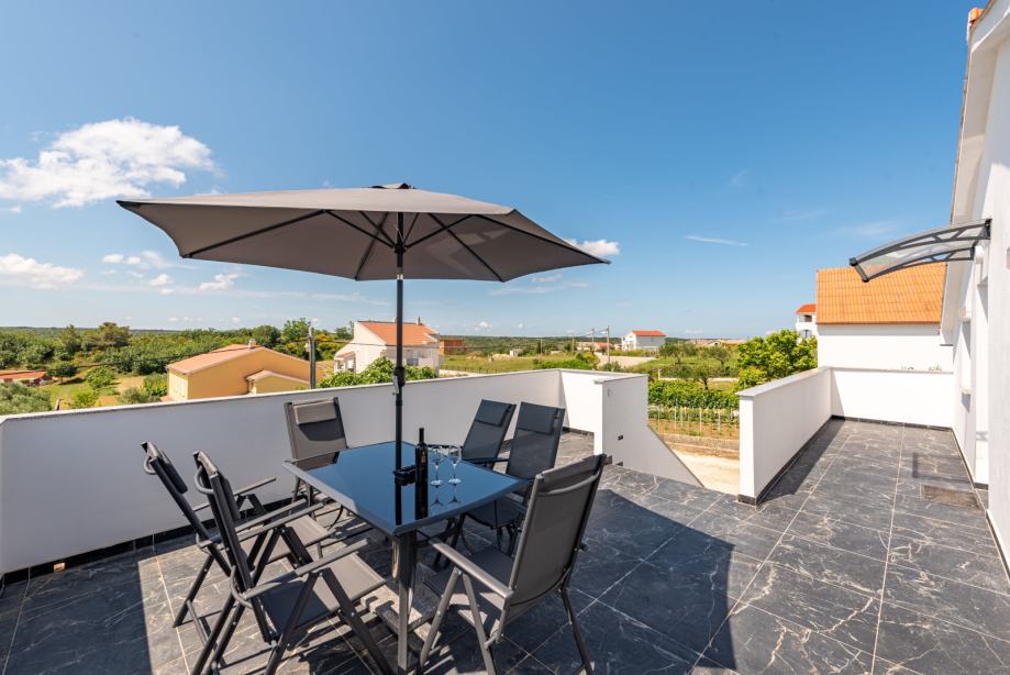 Ovaj prostrani i luksuzni apartman nalazi se u Radovinu i prikladan je za do 7 osoba. Ima 3 spavaće sobe, kuhinju, blagovaonicu te prostranu terasu na korištenje. Parking se nalazi u sklopu objekta. Automobilom se vrlo brzo stiže do mnogih obližnjih mjesta, plaža i sl. kao i grada Zadra i otoka Paga. Apartan je potpuno opremljen. Iskazana je cijena po noćenju.