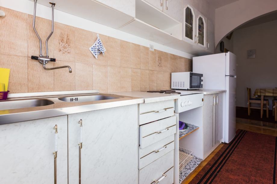 Apartman 2+1 sa pogledom na more sastoji se od spavaće sobe sa pomoćnim turističkim rasklopivim ležajem,potpuno opremljene kuhinje, male blagavaone i kupatila sa tušem na prvom katu kuće sa balkonom na kojem su gosti sami.U apartmanu je na raspolaganju free Wi Fi,tv i klima uređaj.Cijena za 2 osobe od 25 eura do 68 eura po noći.U cijenu uključena boravišna taksa