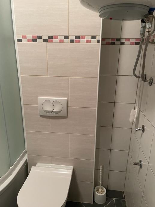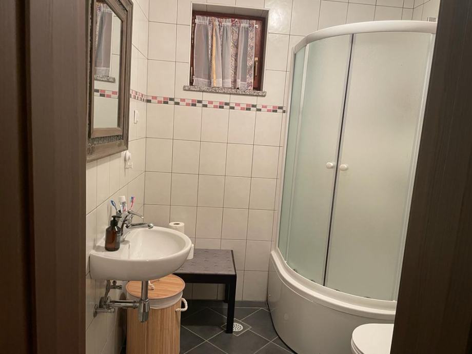 1.kat - kuhinja, kupaonica sa tuš kabinom, stol sa stolcima, kauč na razvlačenje