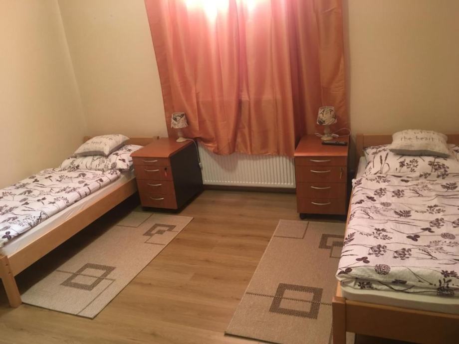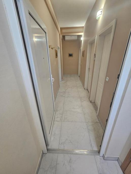 Apartman110 m2 sa 3 dvokrevetne sobe od 16 m2,+ dnevni boravak 16 m2+ kuhinja i blagavaona, kupaona sa tuš kabinom i veš mašinom, wc posebno.