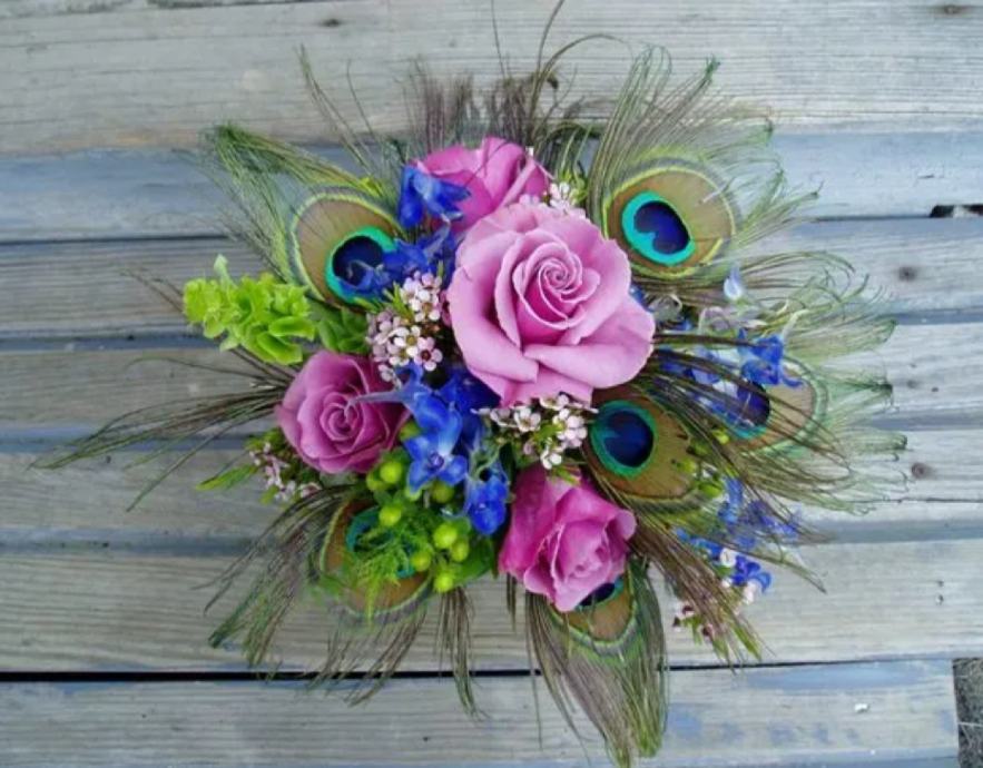 - ( Buket Se Sastoji Od 30 Komada Pera Sa " Očima " Plus 4 Komada " Sablje " )