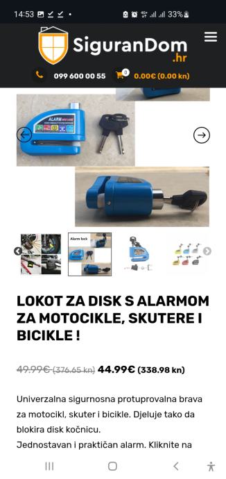 Disk lokot alarm za skuter, biciklu, romobil, motor