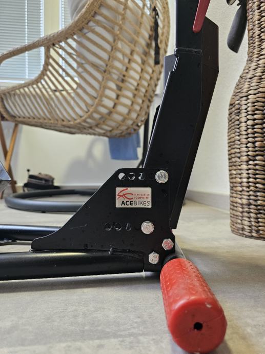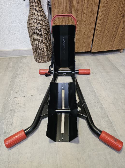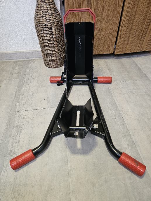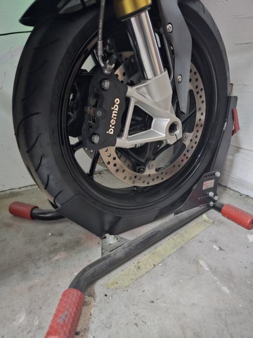 Držač za motor prednji kotač, idealno za manje prostore kako nebi motor na bočnom nogaru zauzimao previše prostora.