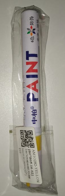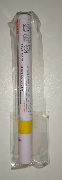 Flomaster za pisanje po gumama motocikla, skutera, mopeda, motora ( enduro, cross, sportski) i osobnih vozila u žutoj boji, potpuno novo i nekorišteno.