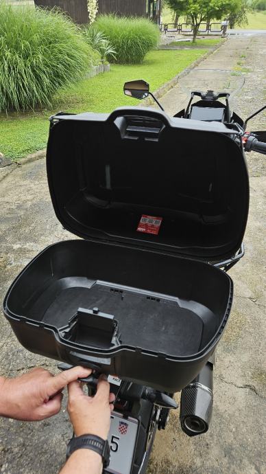 GIVI kofer 45 litara MONOLOCK, ploča i pribor za pričvršćivanje, naslon za suvozača, mekana unutarnja prostirka i mreža. Kofer je nov, bez tragova korištenja.
