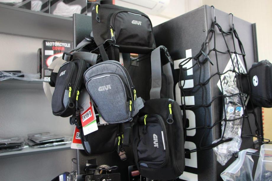 U ponudi imamo kompletan GIVI program, kuferi, bočni kuferi, tank torbe, meke torbe, štitnici motora i ostalo.