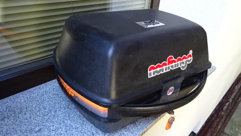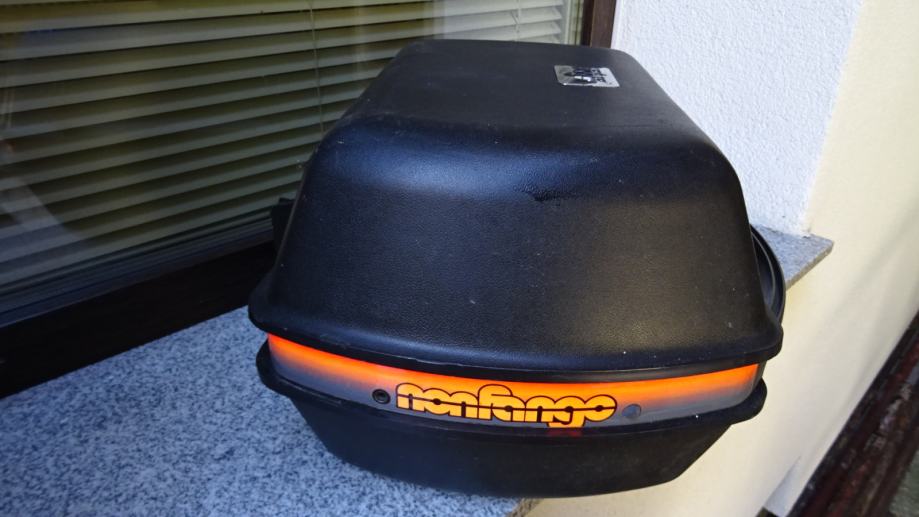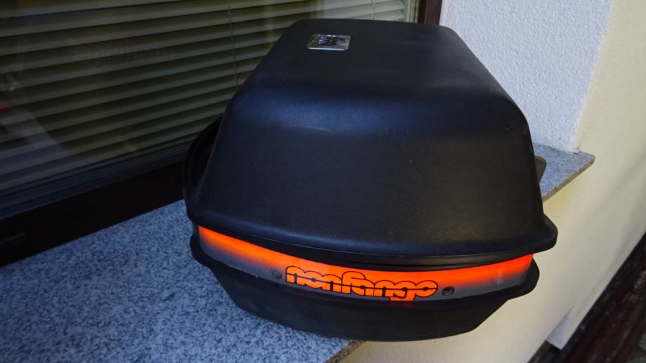 Volumen 34 litara, nigdje oštećen. Prilika za kupnju, ima samo jedan komad, a to je originalni izuzetno oćuvani retro kofer iz 90 godina, proizvođać Nonfango, i tvornićko su se ugrađivali na enduro motocikle Kawasaki.