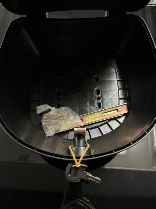Prodajem , novi kovceg za skuter CRNO-SREBRENE boje , s priborom za montazu i dva kljuca.