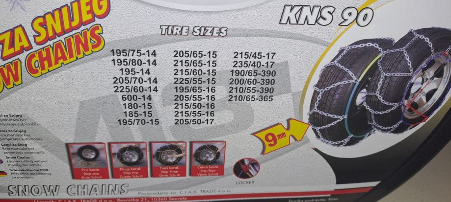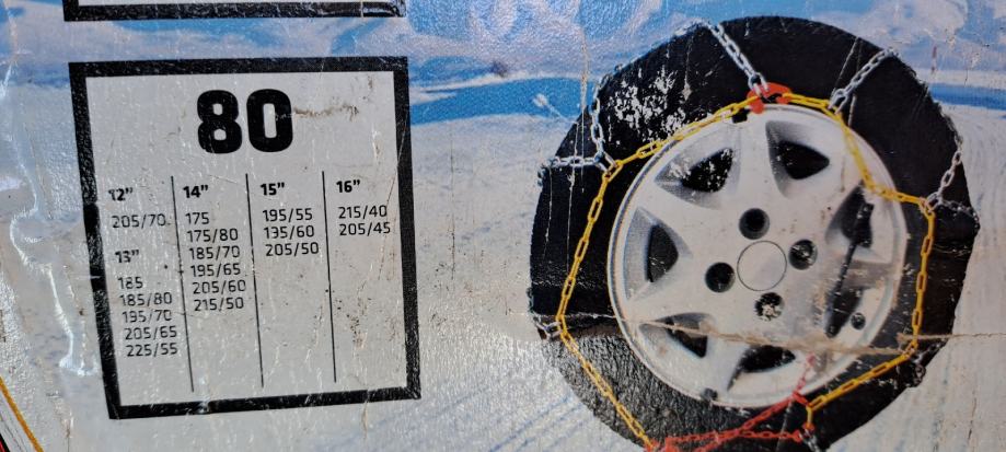 NOVI LANCI ZA SNIJEG RAZNIH DIMENZIJA.CIJENE OD 40 DO 50 e. POLOVNI ILI JEDNOM KORISTENI LANCI OD 20 DO 30 e.