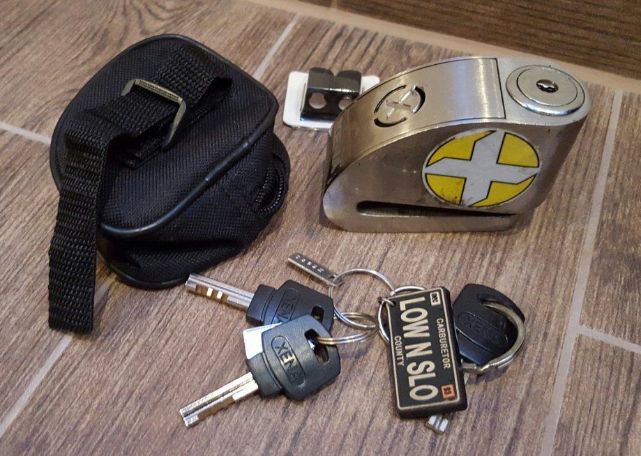 Alarm Xena je osjetljiv na vibraciju, stavi se na disk kotaca motora tako da i blokira kotac .