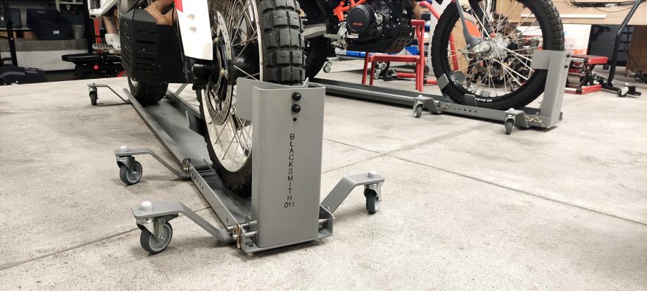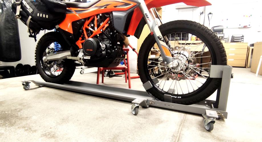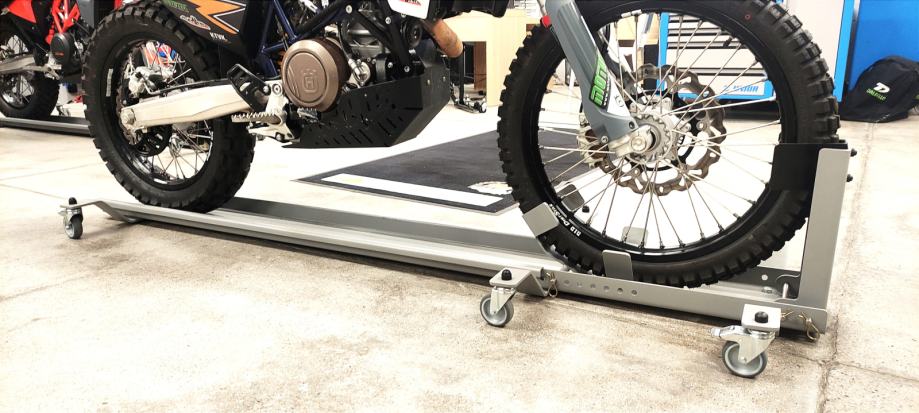 Motorcycle dolly mover with wheel chock 3 in 1 parking, transportation, dolly mover