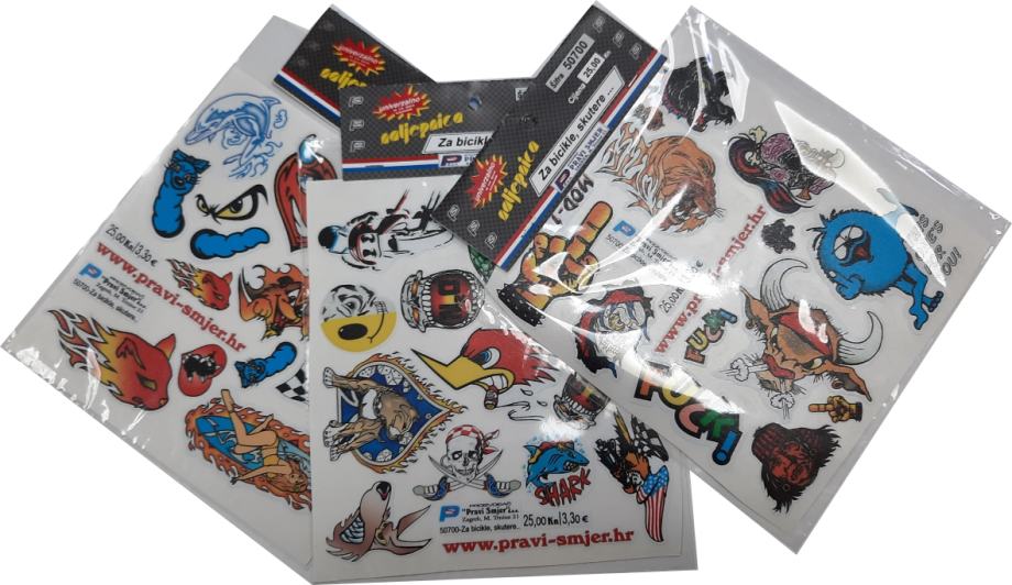 Komplet naljepnica sadrži više raznih naljepnica . Ukupna veličina kompleta