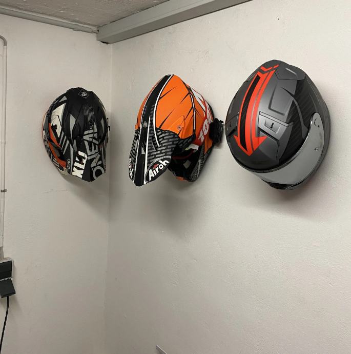 Zidni nosač kacige, boja nosača i logo motora ili kacige po izboru. U ponudi nosaci bez znaka. Cijena nosača 15€.