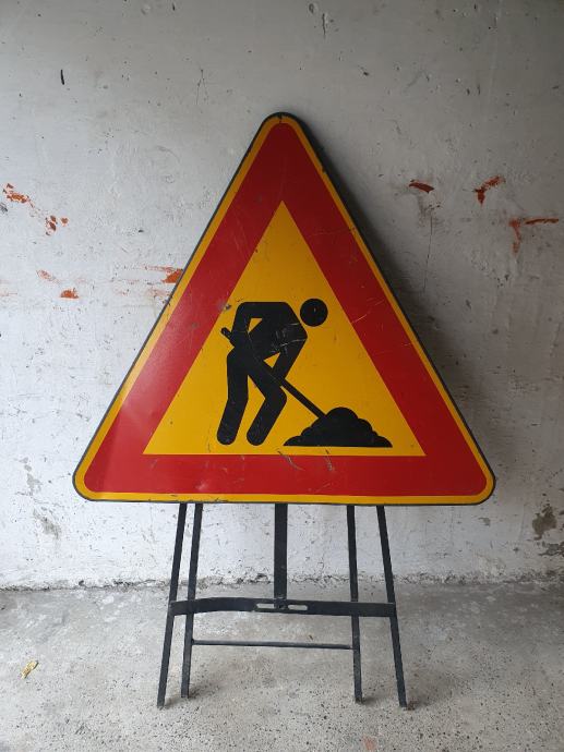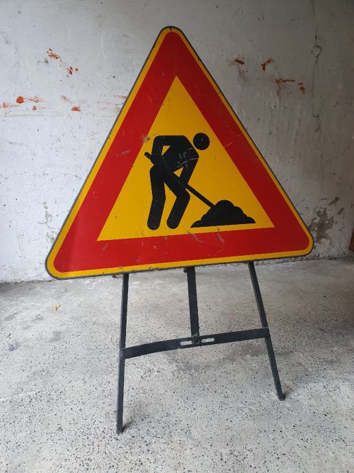 Prometni znak "Radovi u tijeku", sa stalkom-štafelajem