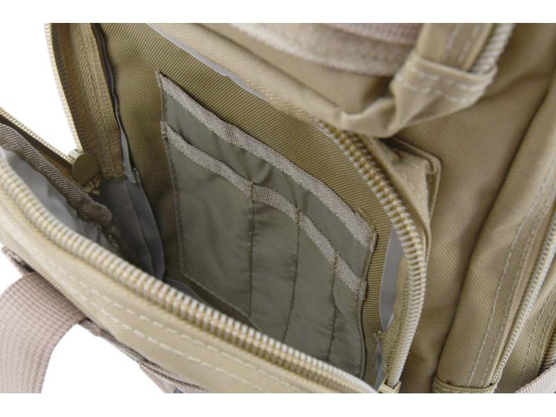 Opremljena je Molle sustavom sprijeda i sa strane za pričvršćivanje ostale opreme.