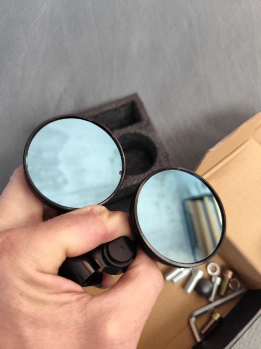 Prodajem mini moto retrovizore. Ne odgovaraju mi izgledom na motoru. Stavljeni i odma skinuti sa motora (nisu se koristili u vožnji). Na jednom staklu sitno oštećenje 1 mm u samome kraju. 20 eu