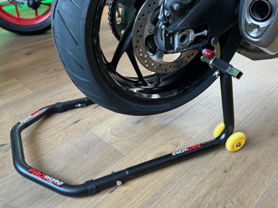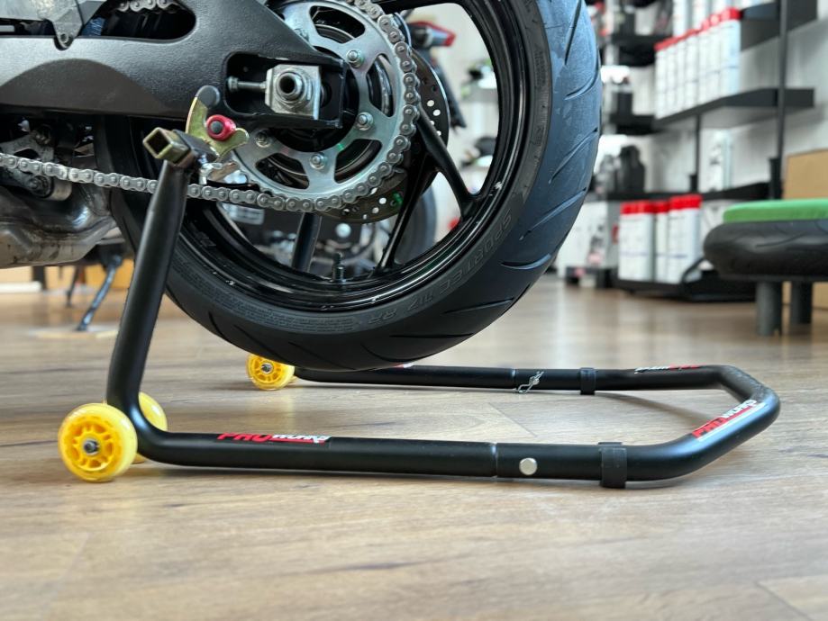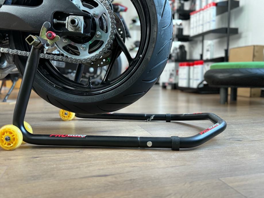 Kvalitetno postolje za motor s podesivom širinom u 2 stupnja koje može podići vaš prednji ili stražnji kotač. Uključuje tri različita adaptera za različite mogućnosti montaže za podizanje bilo kojeg motocikla. Stalak za motor doista je siguran i jednostavan način za servisiranje vašeg motora.